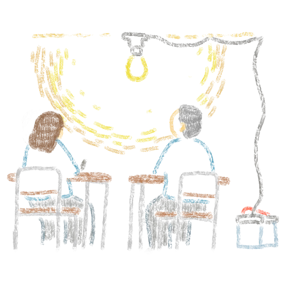 “東日本大震災の計画停電の時、自宅にある中古部品たちを活用して自家発電ができないかと思って、徹夜作業。なんとか1日で教室に明かりを灯すことができました”